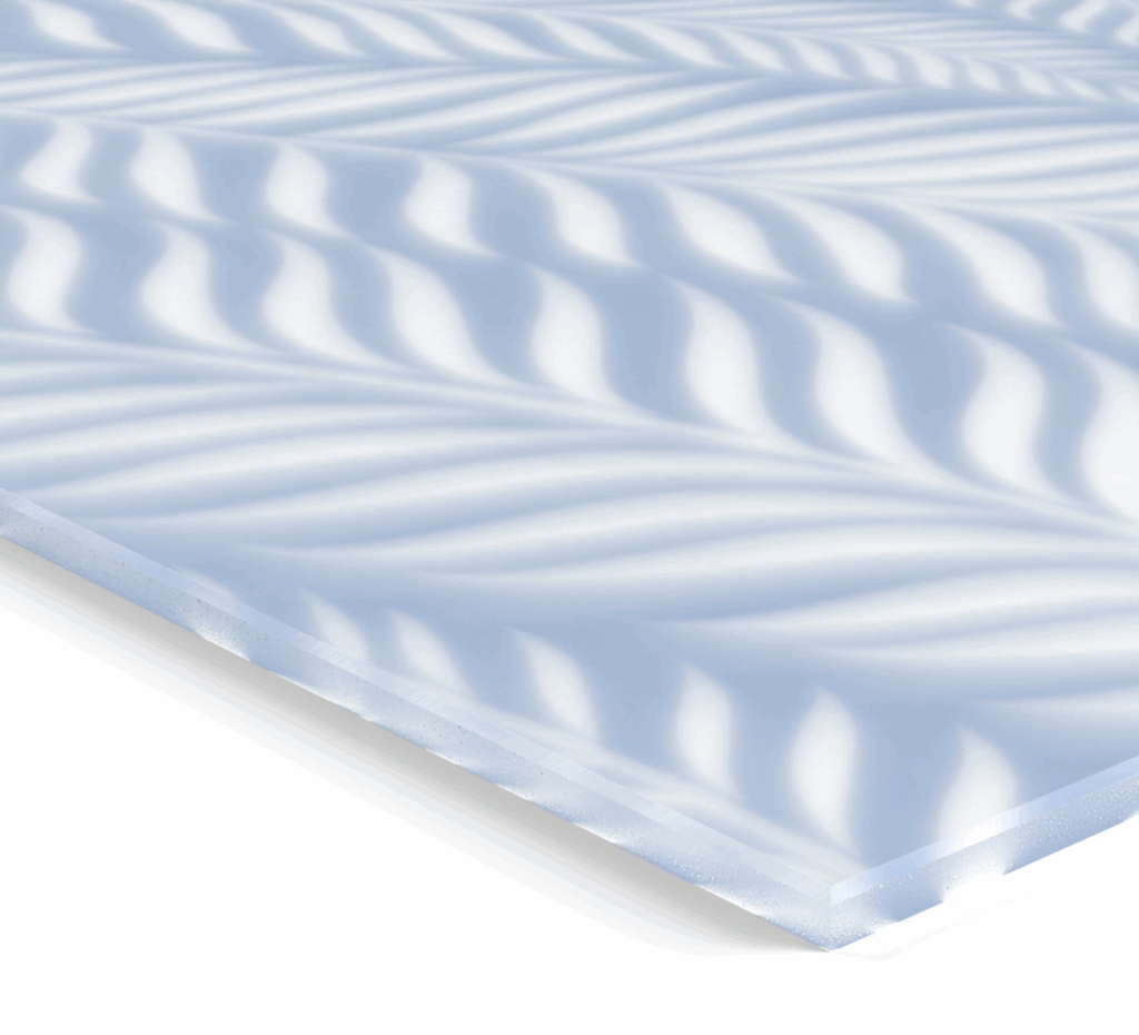 Das bessere ESG-Glas, 31 % widerstandsfähiger. 6 mm dick mit einer satinmatten Oberfläche.